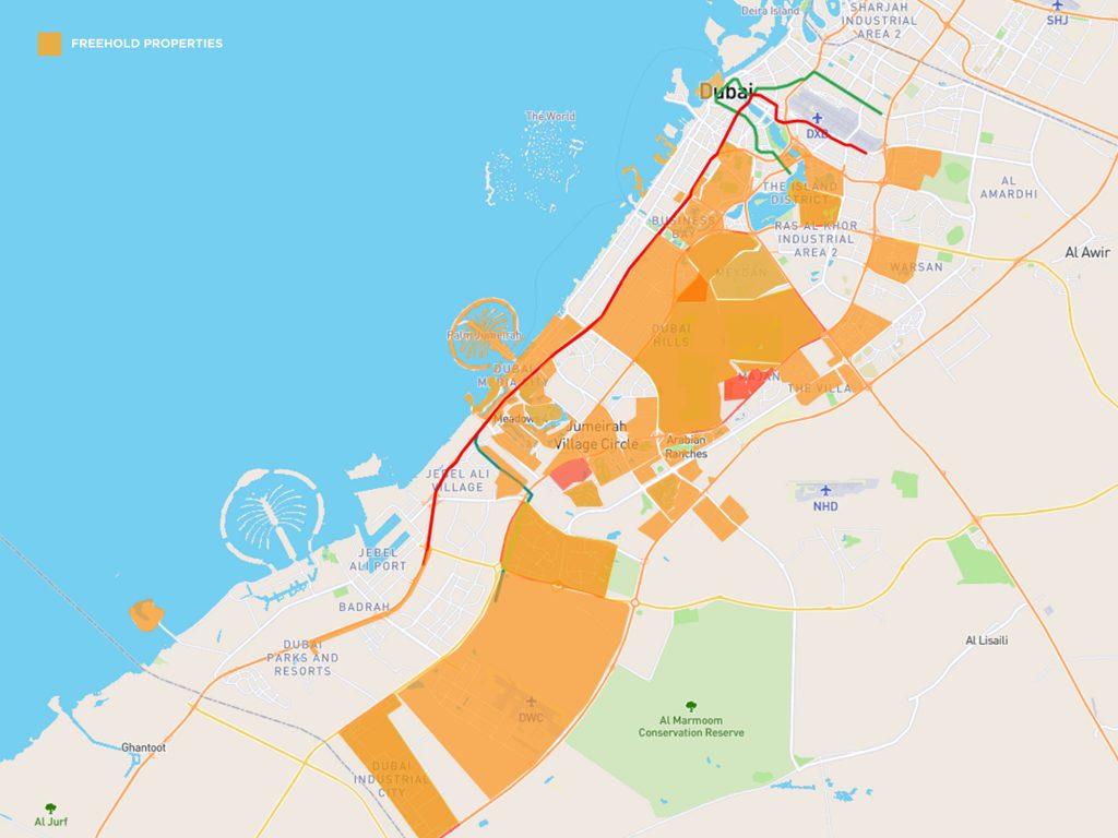 Popular freehold locations still under development (Off Plan) include Dubai Creek Harbour, Dubai Hills Estate, Dubai South, Dubailand, Mina Rashid and selected waterfront locations in Jumeirah.