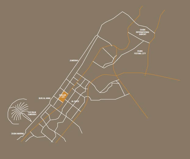 Located in Al Manara, Emaar by MV villas are nestled close to Downtown Dubai. It is just minutes from Dubai Marina and Burj Al Arab. It is also close to the beach. This is an ideal location, away from the noise of the city traffic and close to all the major landmarks of the city.