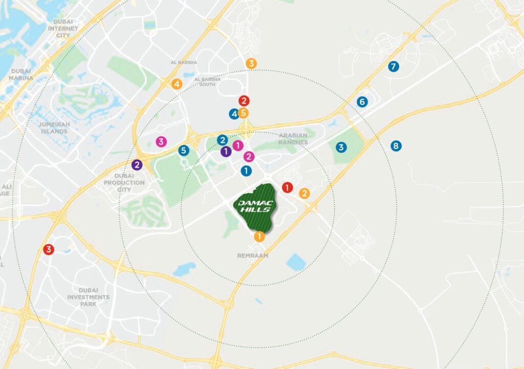Located in Damac Hills, Melrose Estates residents will have easy access to major landmarks in the city. The community is nestled close to Remraam, Arabian Ranches, Mudon, Dubai Sports City, and lies between Al Qudra Road and Hessa Street.